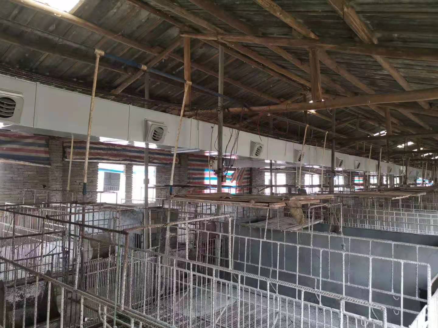 濕簾冷風機管道出風口位置能使溫度降低4-10℃,在設計時只需考慮采取定位送冷風的方式,使風口只對母豬定位欄吹涼風,而對旁邊活動的仔豬則完全不影響,從而達到母豬定點降溫與節能的良好效果。